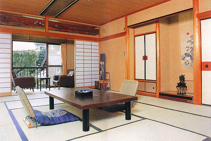 川の音と楠の葉がゆれる音に包まれる純和風のお部屋。お部屋でのお食事、芸者さんを呼んでのお座敷遊びもお楽しみいただけます。
